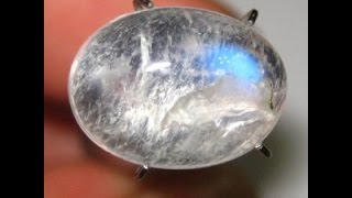 Batu Mulia Natural Moonstone bentuk oval cabochon dengan kristal bening sedikit serat yang berluster blue flash atraktif, ukuran 10.97mm x 8.86mm x tebal ...